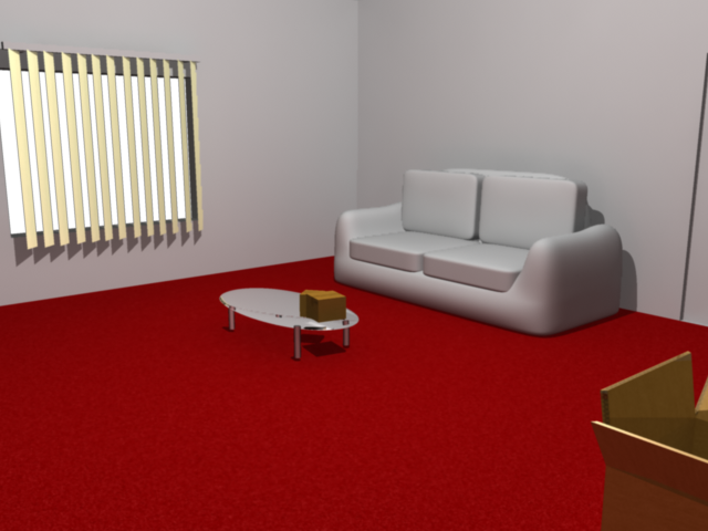 The glass coffee table needs a bit of work because I can't get the boxes on top of it to show up in its reflection yet, and its a bit too shiny for a glass table anyway. The window is also missing, that will also have a glass effect on it and maybe some basic trees and a sky outside it to make it look better. The only things left to do after that are the sofa and wall textures, models for the light, TV, desk and shelves. After that I can start animating the lamp. The only thing worrying me is the amount of time rendering the animation will take, because it takes around 30 seconds just to render a static image for what I have so far.